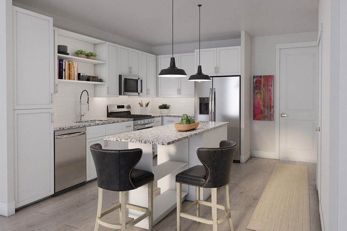 Rendering of the B3 floor plan with 2 bedroom[s] and 2 bathroom[s] at Gin Mill