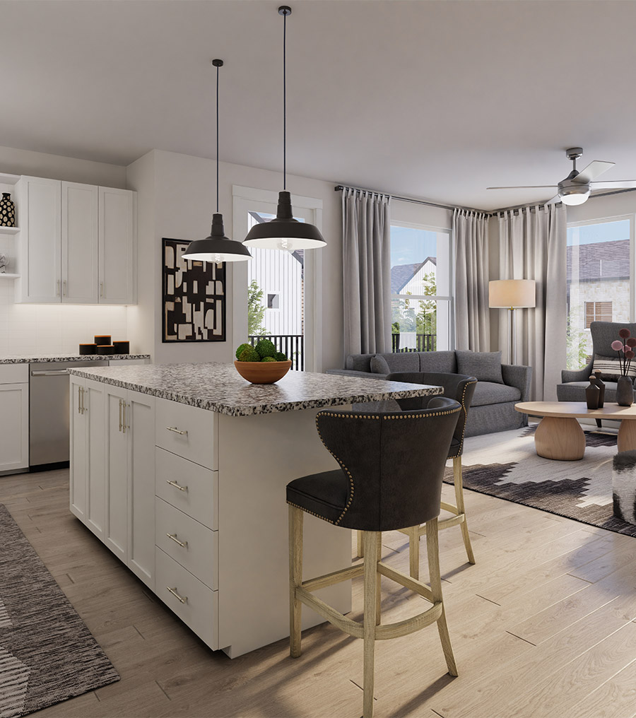 Gathering inspiration from the agricultural site that The Gin Mill sits on, this community is decked in modern farmhouse decor and the outdoor open space spans as far as the eye can see. Elevated yet minimal, this is your new home to inspire life’s richest adventures.